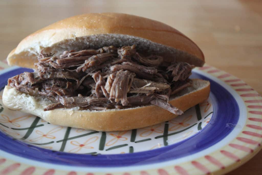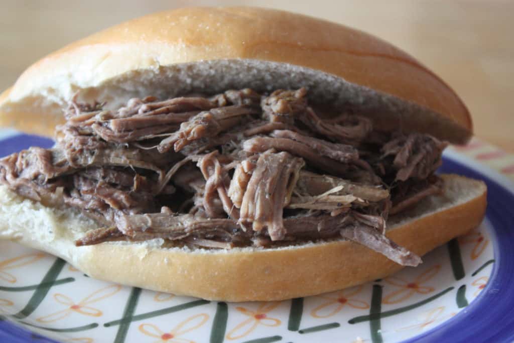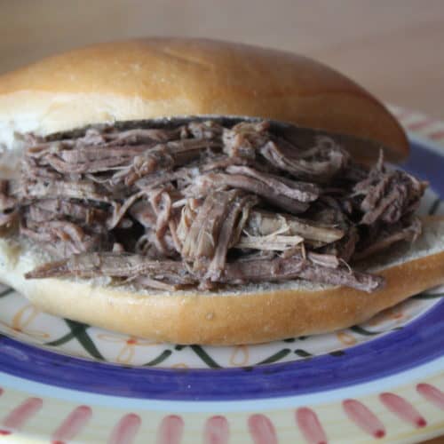This Italian beef comes together so easy. It’s nothing more than placing a beef roast in a slow cooker with some liquid and seasonings. Set it before you leave the house and you will come home to dinner already done!