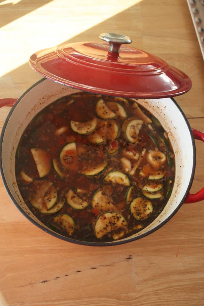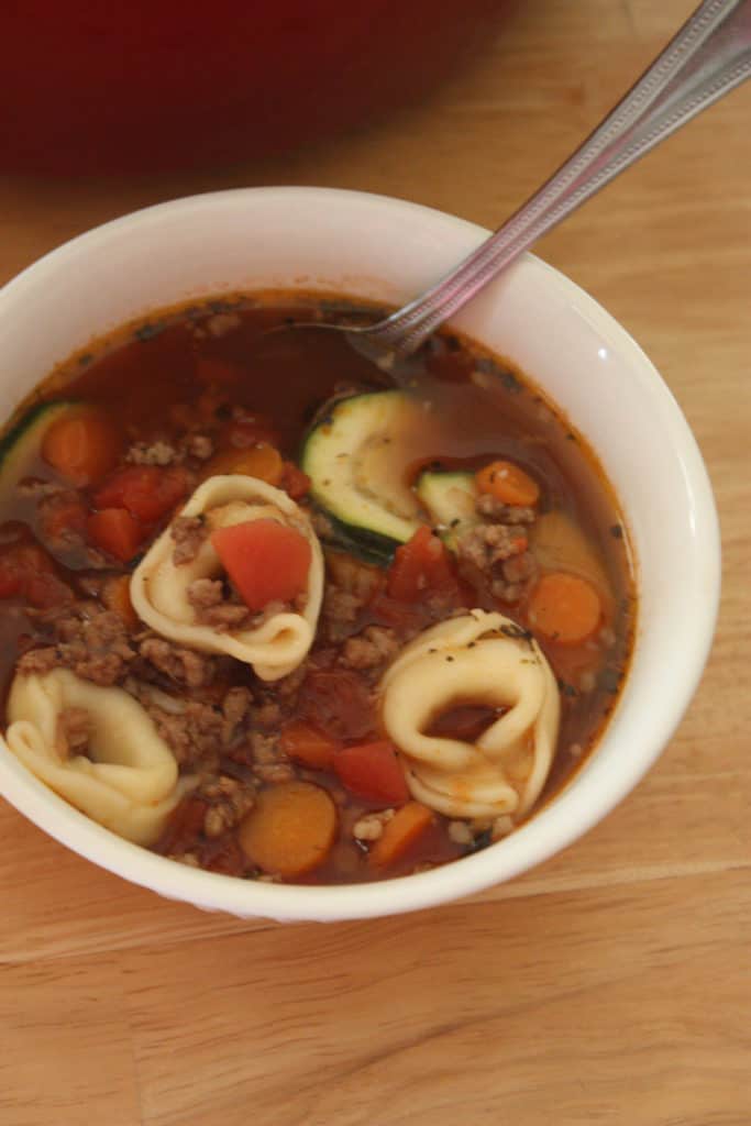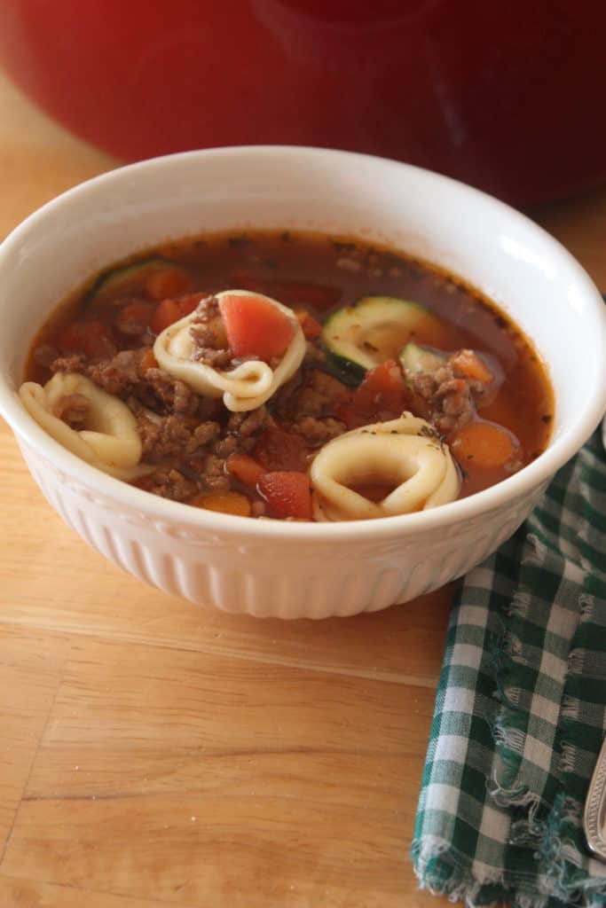 This soup comes together quickly but like most soups, it gets better with time. Don’t get me wrong, it’s good right when you make it, but after it simmers for a while the flavors intensify. If I know I’m going to make this a day ahead of time, I will prep the recipe through step 2 and just bring it back up to a simmer the next day and then add the zucchini and tortellini right before I serve it.
