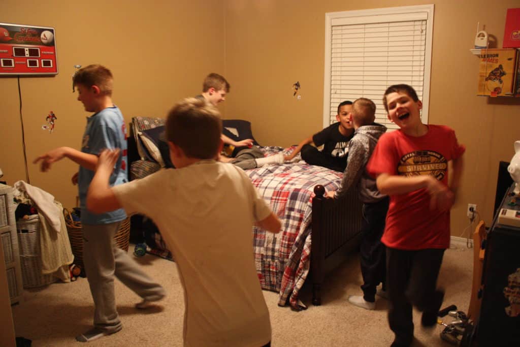 What you can’t see in the picture is the balls that were flying through the air, the kids jumping on the bed and the swords that were waving! They were even playing some hallway basketball as well.