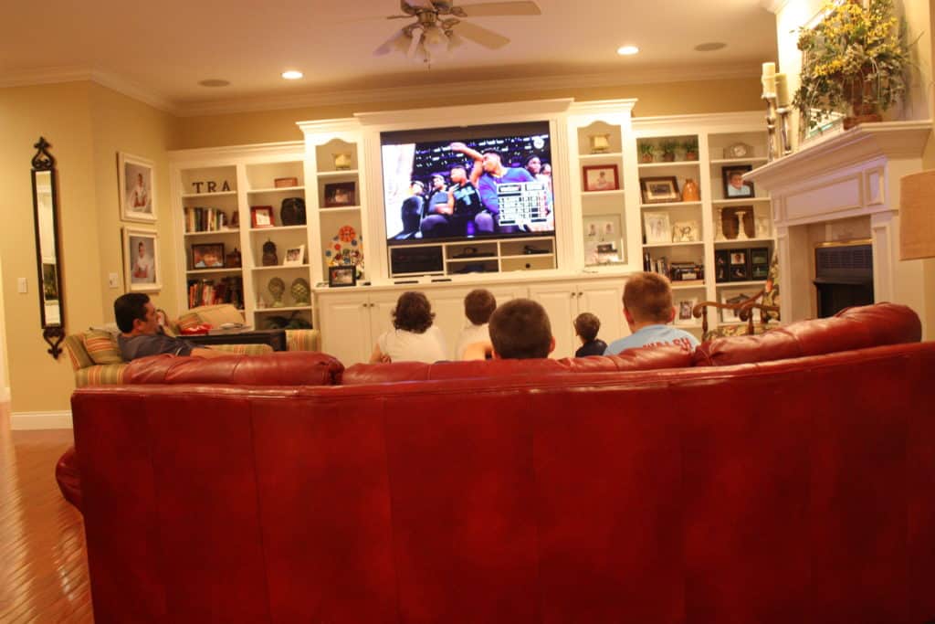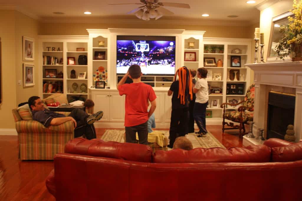 The game was about to come on so I was hurrying to get the food set out. They were filing in and out of the kitchen grabbing pizza rolls, cookies, sodas. I finally got done in the kitchen and went to grab a seat behind the action because I didn’t want to get in the way of their viewing.