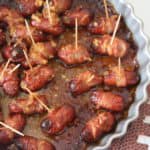 These sweet and savory bacon-wrapped sausages make the perfect appetizer for any party!