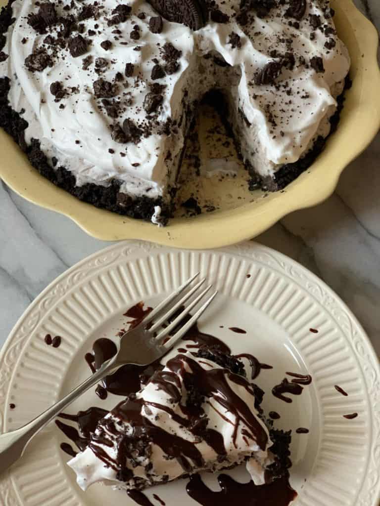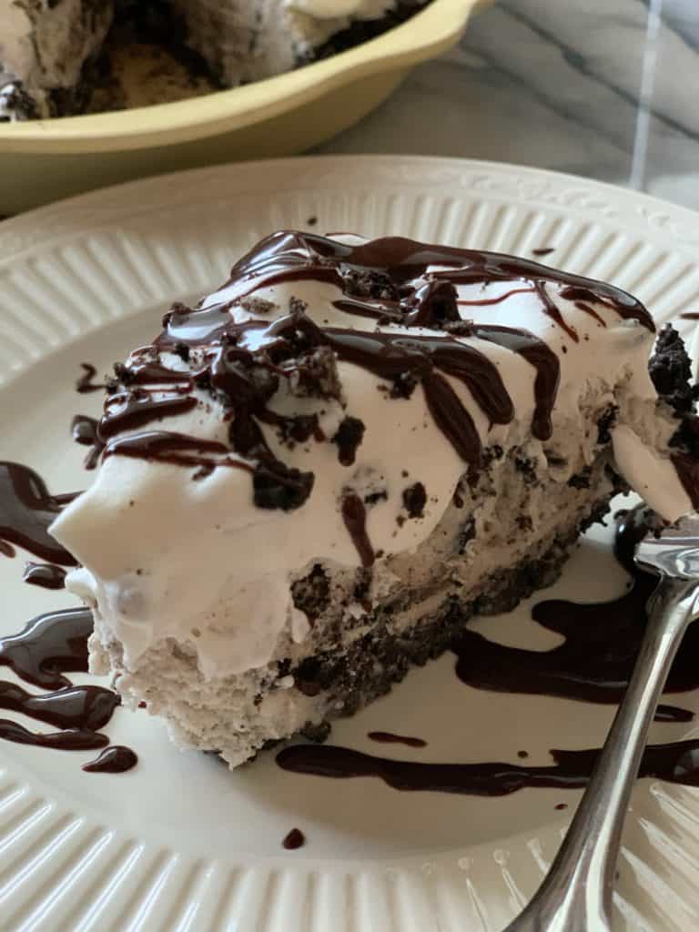 Today I am bringing you a recipe for Oreo Ice Cream Pie. I hate to even call it a recipe because it’s so easy! You only need 4 ingredients! I have made this 3 times over quarantine and my family is not tired of it yet.